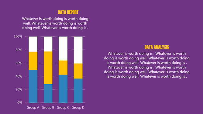 炫彩简约时尚通用PPT模板。一套创意时尚色彩绚丽幻灯片模板,蓝黄紫高对比色系配色,动态播放,通用性强。