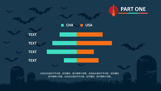 精美搞怪万圣节主题PPT模板。一份设计精美的万圣节主题幻灯片模板,以恐怖月夜、蝙蝠、古墓、怪物等元素设计。