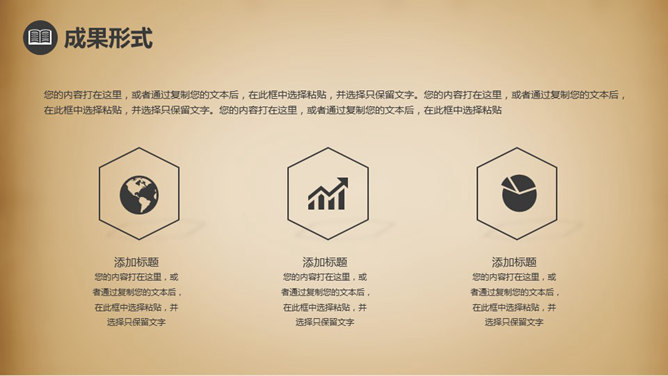 复古风毕业论文答辩PPT模板。一份设计精美毕业设计论文答辩幻灯片模板,采用复古做旧背景,共26页,页面丰富完整,好看的动态演示效果。另有45个答辩学术相关小图标备用。