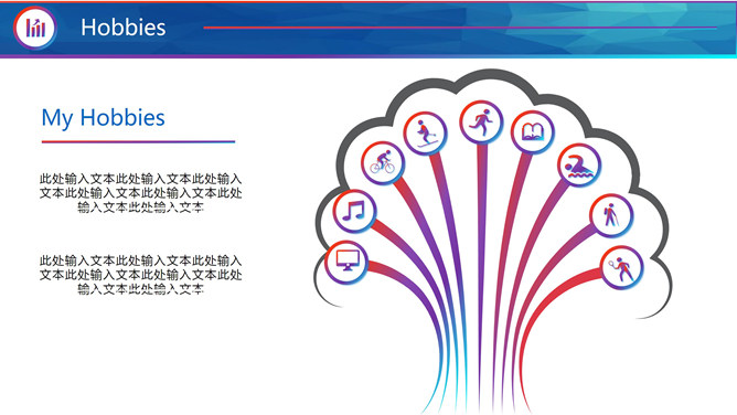 这是一份大学生个人简历PPT模板,16:9的宽屏设计,共8页,动态演示效果,蓝色主色调。内页包括:个人简介;教育背景;项目经历;实践经历;荣誉成绩等内容。