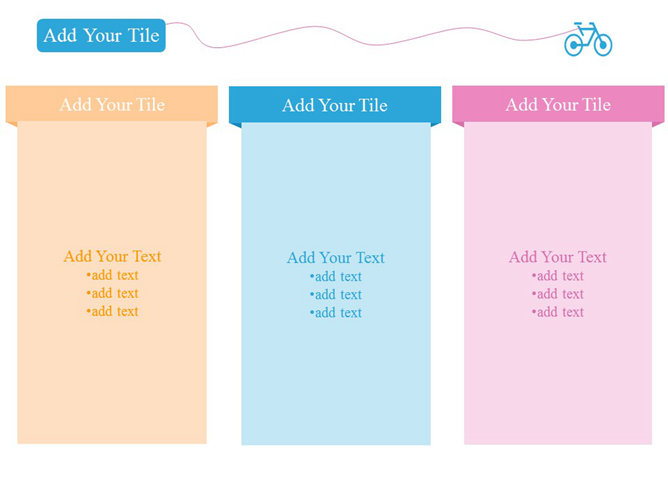 小清新三配色通用PPT模板。一份设计简洁清新的幻灯片模板,蓝色、橙色和粉色三种配色,动态播放效果,用途广泛。