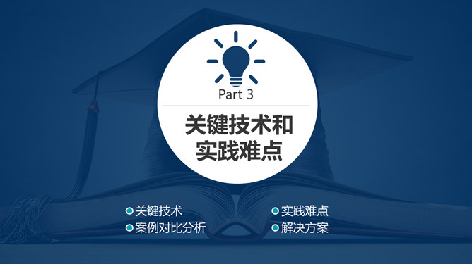 学位帽毕业论文答辩PPT模板。一套通用毕业设计答辩幻灯片模板,学位帽设计,动态效果,框架结构完整。