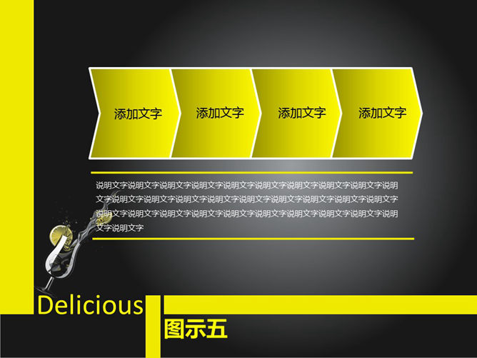 一份餐饮美食行业相关的PPT模板,渐变黑色背景,黄色色调,大气商务简洁风格,动态演示,适合餐饮、饮品相关主题。