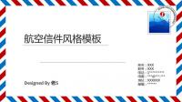 一份航空信件风格的PPT模板,非常有创意,内页采用稿纸风格,还包括邮票风格图片展示页面和数据页面。