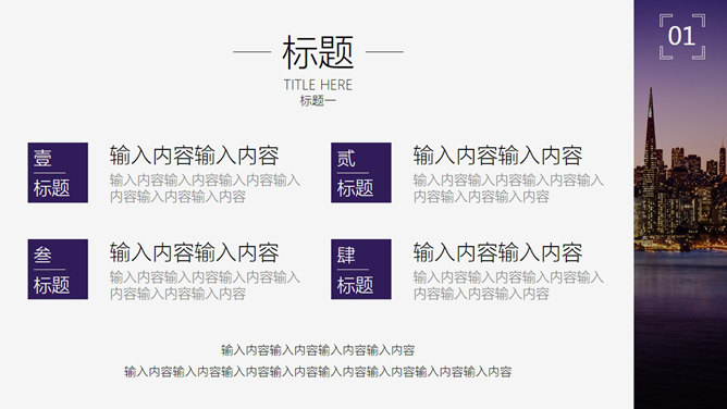 繁华城市夜景优雅商务PPT模板。一份优雅大方的商务风格幻灯片模板,以城市夜景为背景,内页排版简约时尚。
