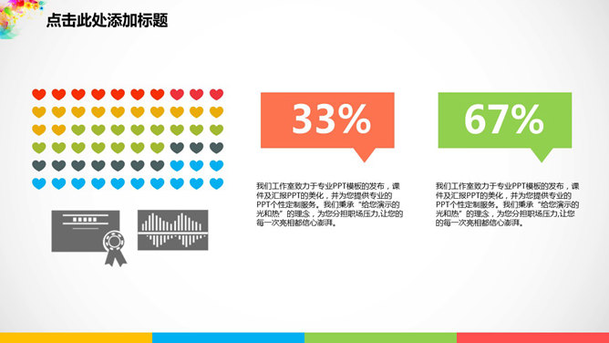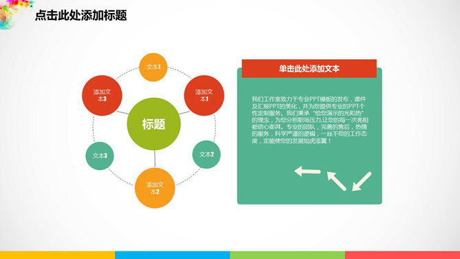 梦幻炫彩艺术花纹PPT模板。这是一个风格简约的,以彩色梦幻花纹为背景的幻灯片模板,配色鲜艳,通用性强。