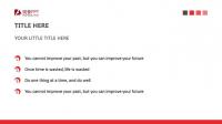 一份万能通用的简约PPT模板,纯白色背景,红色主色调,淡入淡出切换效果,适用广泛,可用制作年终工作总结PPT。