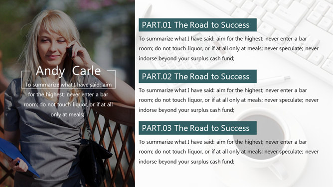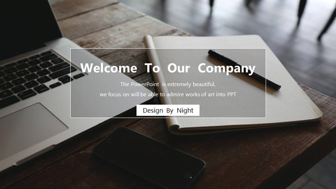 电脑桌面欧美风商务PPT模板。一套时尚商务风幻灯片模板,笔记本电脑桌面背景,以图文排版页面为主。