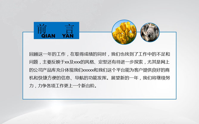一份非常强大的年终工作总结PPT模板,风格商务大气,共29页,包含几乎所有种类的图表,动态演示效果,强烈推荐。