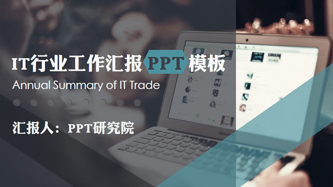 一份设计精美的适合IT互联网行业工作总结汇报使用的幻灯片模板,采用时尚商务笔记本电脑图片背景,蓝色色调,扁平化设计,漂亮的动态翻页翻书效果,更多同类模板请参阅:工作汇报PPT模板。
