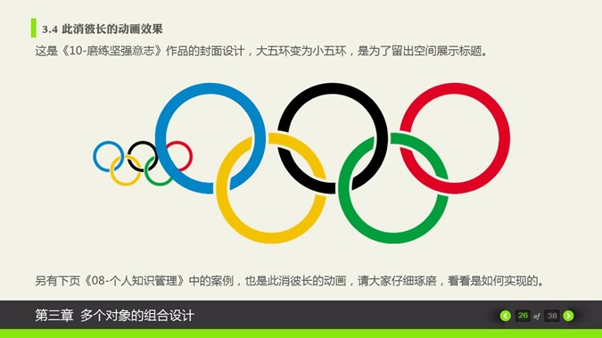 这是一个PPT动画设计的基础教程,共38页,讲解的细致到位,简单易懂。包括:1、简单动画的个性设计。2、单个对象的组合设计。3、多个对象的组合设计。4、典型动画的应用举例。