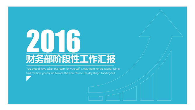 教你三分钟搞定封面。如果只是工作,我们其实并不需要太多的设计,三步就可以搞定一个很专业的封面。封面的三大元素:文字、颜色、版式。文字:作为一个三流的PPT设计师,在我们这个圈子里流传着这样一个原则,<宋体秒杀原则>和<万能雅黑原则>。万能雅黑原则:微软雅黑是一款万金油字体,宋体秒杀原则:见到默认的宋体一律pass。不要使用标准色,那么我们可以吸取一些好看的颜色,如果有VI色直接取就可以了,无非三种,居右排布,居中排布,居左排布,最重要的事情是对齐!!!