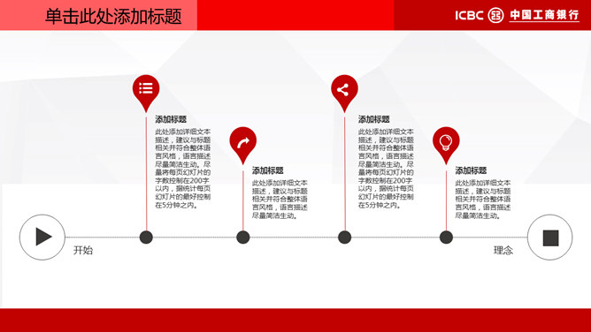 中国工商银行专用PPT模板。一套中国工商银行汇报报告专用幻灯片模板,采用工商银行logo和红色主题色设计。