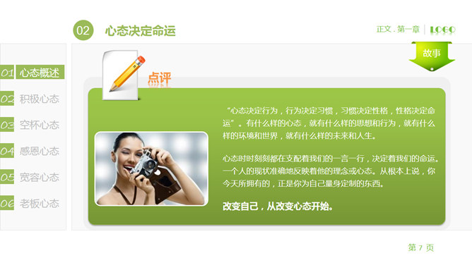 布衣公子的员工在职培训系列之员工心态培训PPT课件。心态就是人们对待客观事物的看法、观点,心态决定命运。