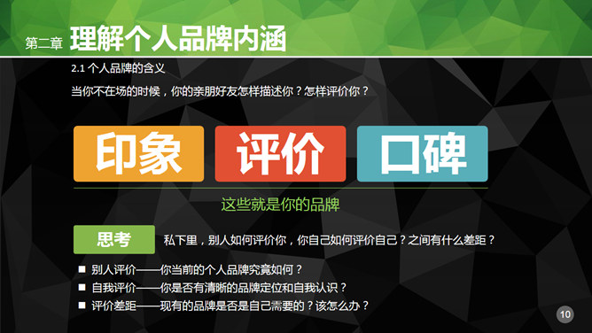 个人品牌就是别人对你的评价、印象和口碑。塑造良好的个人品牌会让你的职场之路越走越远。布衣公子来教你创建个人品牌,包括:唤醒个人品牌意识;理解个人品牌内涵;实施个人品牌塑造;传播个人品牌价值。