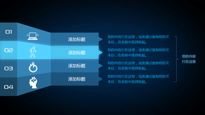蓝色荧光炫酷动态手势PPT模板。一套动态效果非常炫酷的幻灯片模板,科技感蓝色荧光效果设计,动态手势切换,适合互联网、科技类等主题。使用字体:Pirulen、UKIJ Qolyazma。