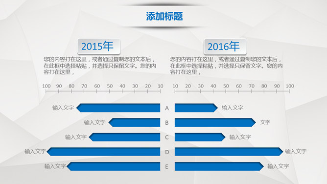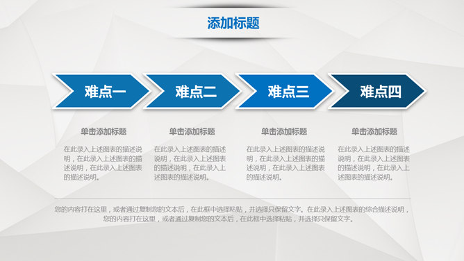 抽象几何背景商务通用PPT模板。一套大气多功能通用幻灯片模板,质感立体几何背景,蓝灰配色,适合商务汇报、工作总结报告等用途。