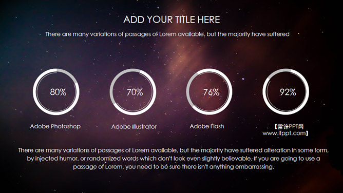 炫酷星空风动态商务PPT模板。一份精美星空背景商务幻灯片模板,白色半透明形状元素,排版布局简约时尚。