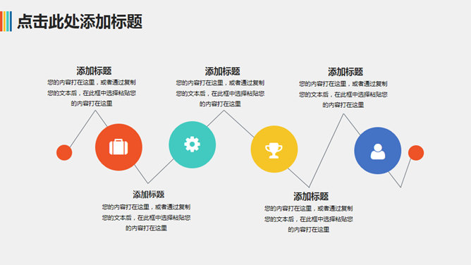 热气球年终汇报述职通用PPT模板。一套年终工作总结汇报、述职报告通用幻灯片模板,清新多彩配色,页面类型丰富,框架结构完整,动态演示效果。