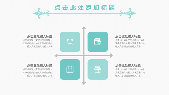 淡雅简洁清新动态PPT模板。清新淡雅色调,灰色背景,花纹装饰,动态演示效果,逻辑关系图表丰富,适合女生使用。