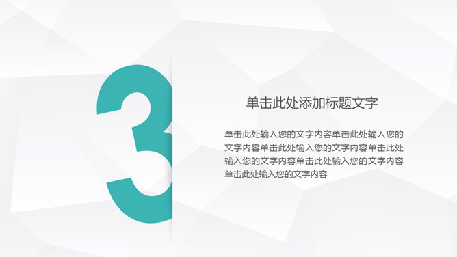 简约小清新微立体PPT模板。白色低面多边形背景,清新三色配色,微立体效果,动态切换,建议安装字体:汉真广标。