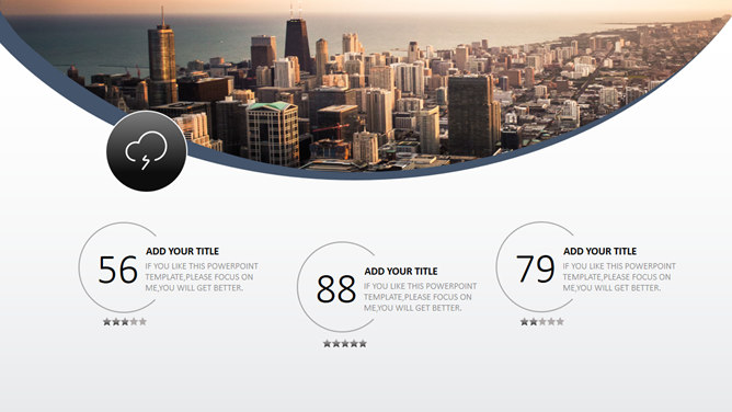 创意连续变化圆圈PPT模板。一套精致简约创意幻灯片模板,连续动态变化的圆圈效果设计,素雅黑灰配色。