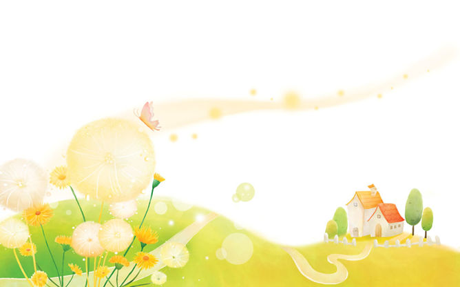 卡通风格的乡村田园风光。蓝天、白云、牧场、奶牛、风车房,轻风吹拂你的脸庞,美的就像童话里的世界。