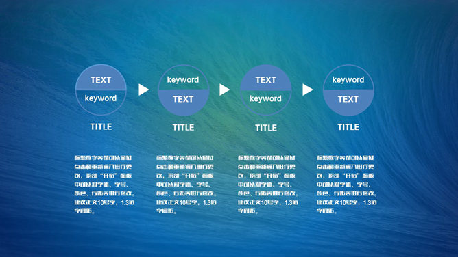一份很好看的年终述职报告PPT模板,蓝色海量背景,白色字体,附带背景音乐,动态播放,使用前请先安装字体,方正粗谭黑简体、Fibography_PersonalUse,已打包在压缩包中。