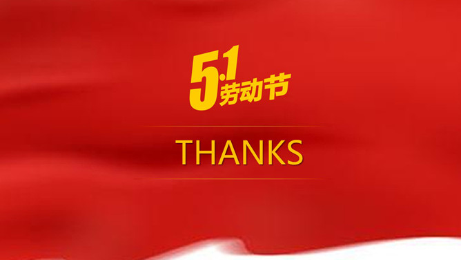 红色五一国际劳动节PPT模板。一份设计简洁的五一劳动节主题幻灯片模板,飘带红旗背景,喜庆红黄配色。