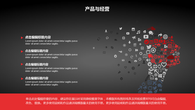 黑红点线大气商务PPT模板。一套欧美范商务幻灯片模板,经典黑红配色,简约大气排版,使用字体:张海山锐谐体。